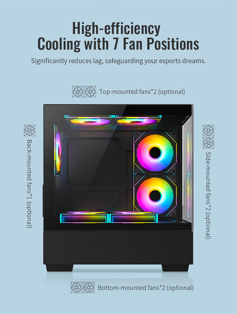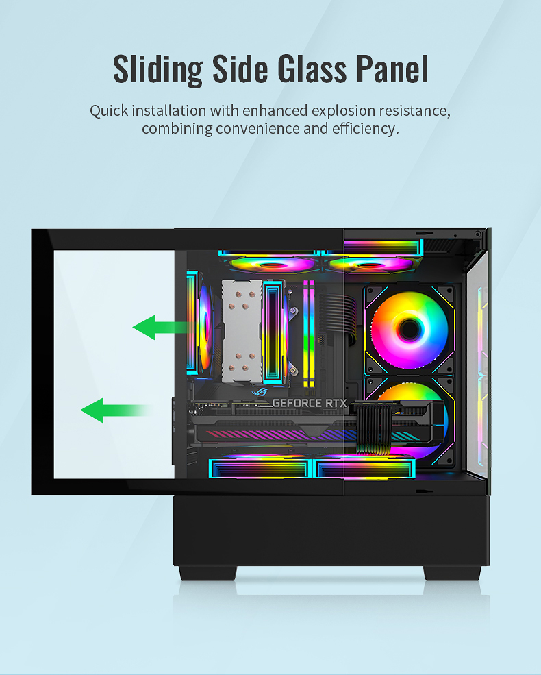 | Features | Entry-level gaming case Two side tempered glass |