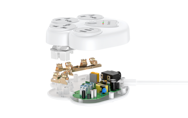 The AC wire core and copper bar inside the Huntkey Charge Station F20 are made of high-quality copper. Using sockets made of high-quality copper materials can improve conductivity, enhance safety, extend service life, reduce power loss, improve performance stability, adapt to different environments, reduce electromagnetic interference, improve aesthetics, support environmental protection, and meet high standards of electrical safety and performance requirements.
