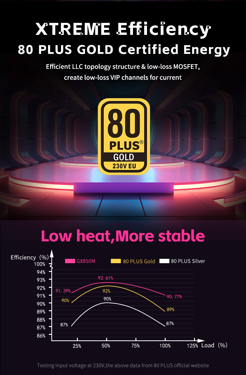 2.80PLUS Gold efficiency level,efficiency high up to 92%