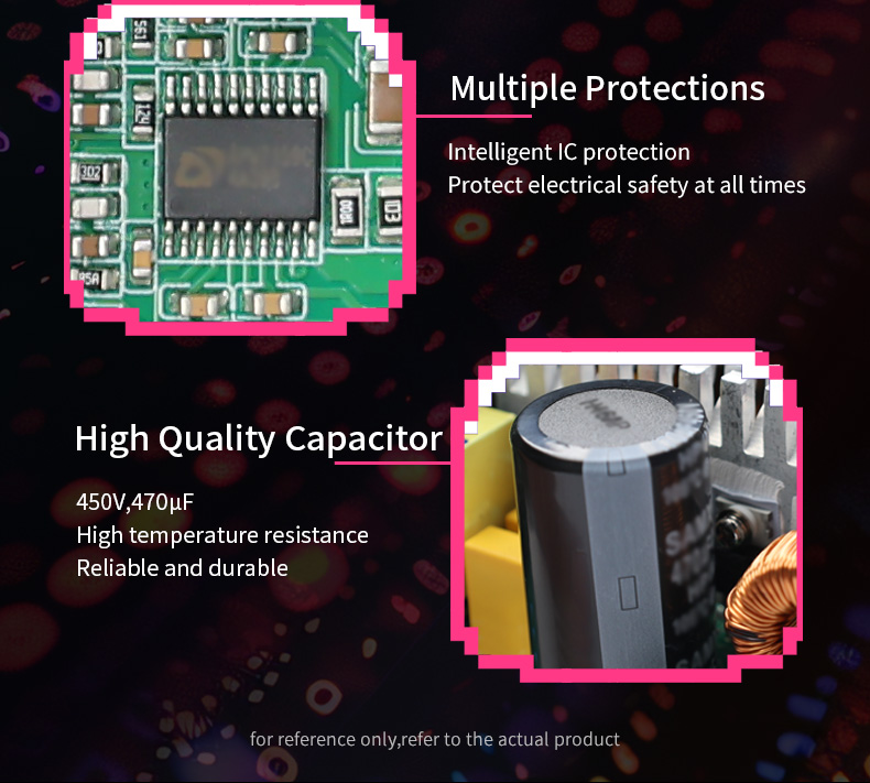 5.High stabilized voltage,+12V voltage fluctuate below 1%