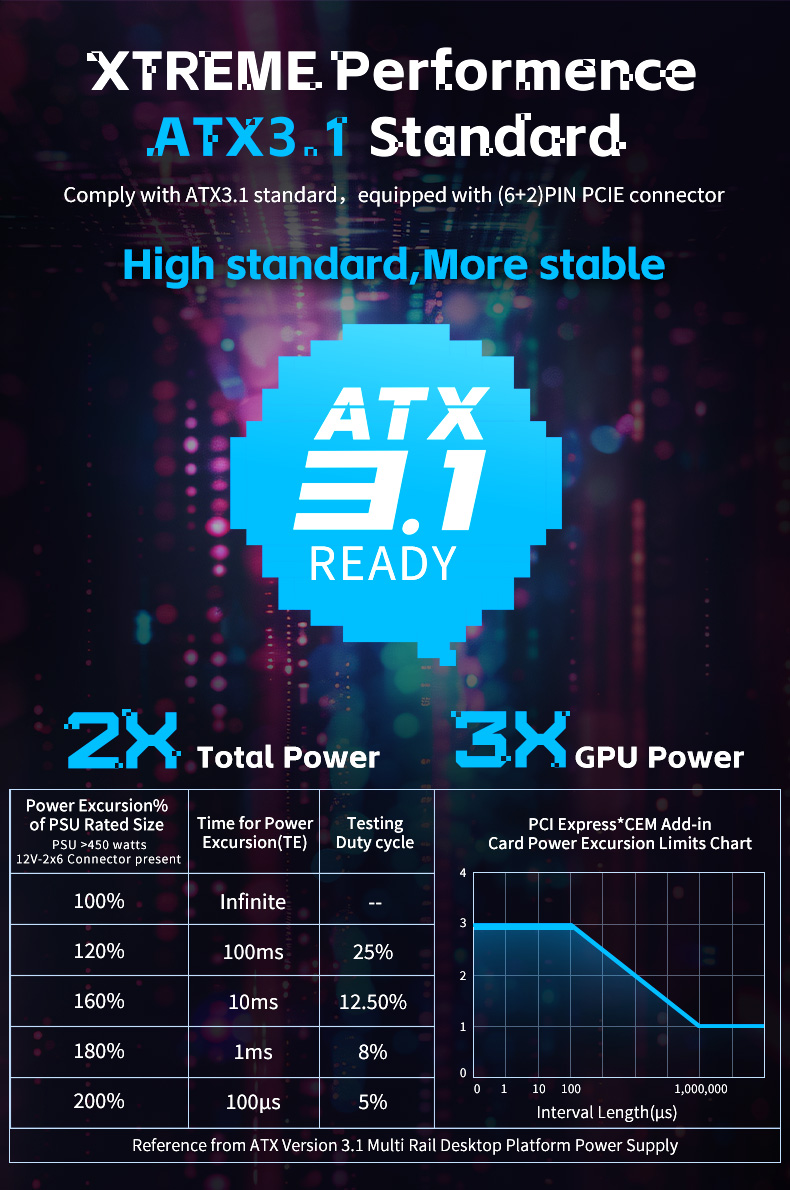 3.Intel ATX3.1 ready,PCI-E (6+2)P connector