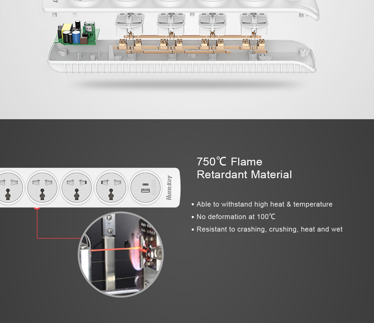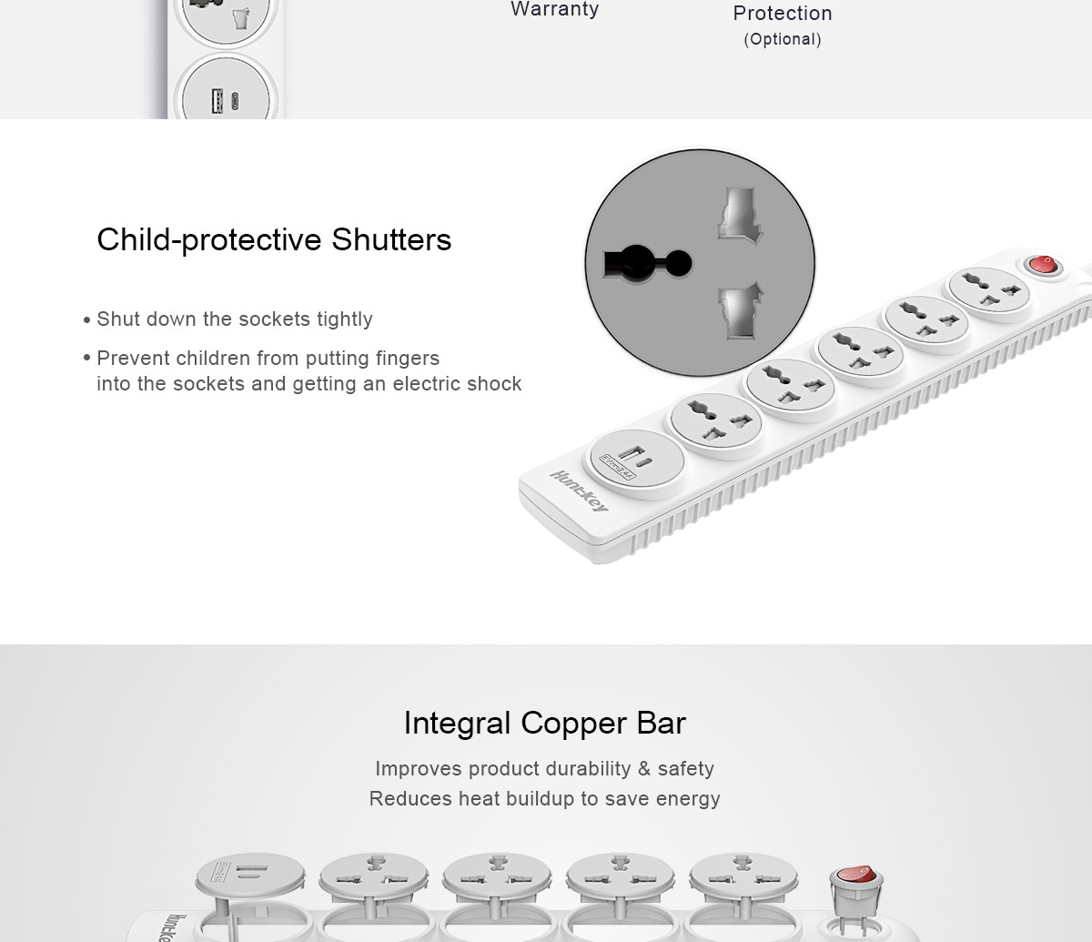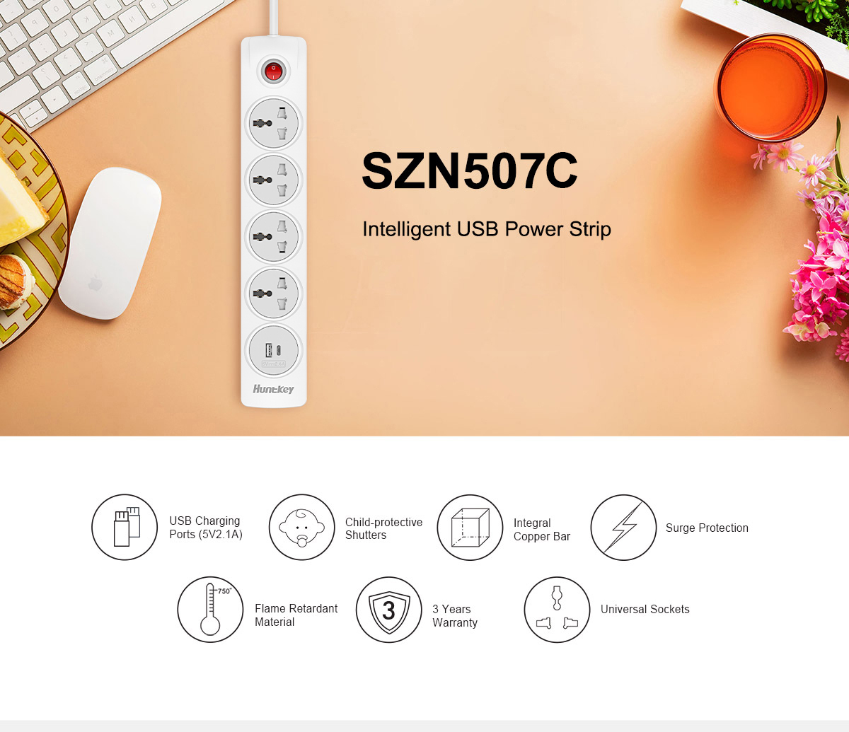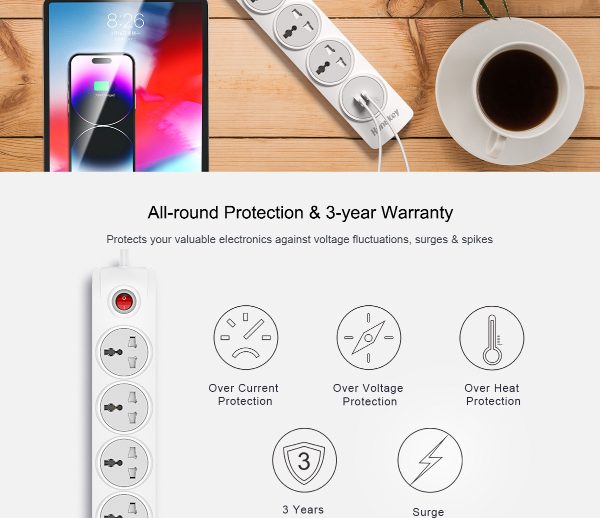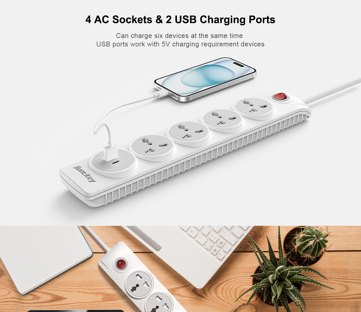 • 4 Universal AC outlets +1 USB-A+1 C(total 5V2.4A)