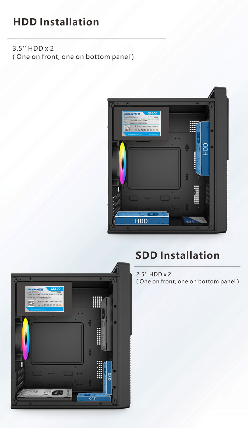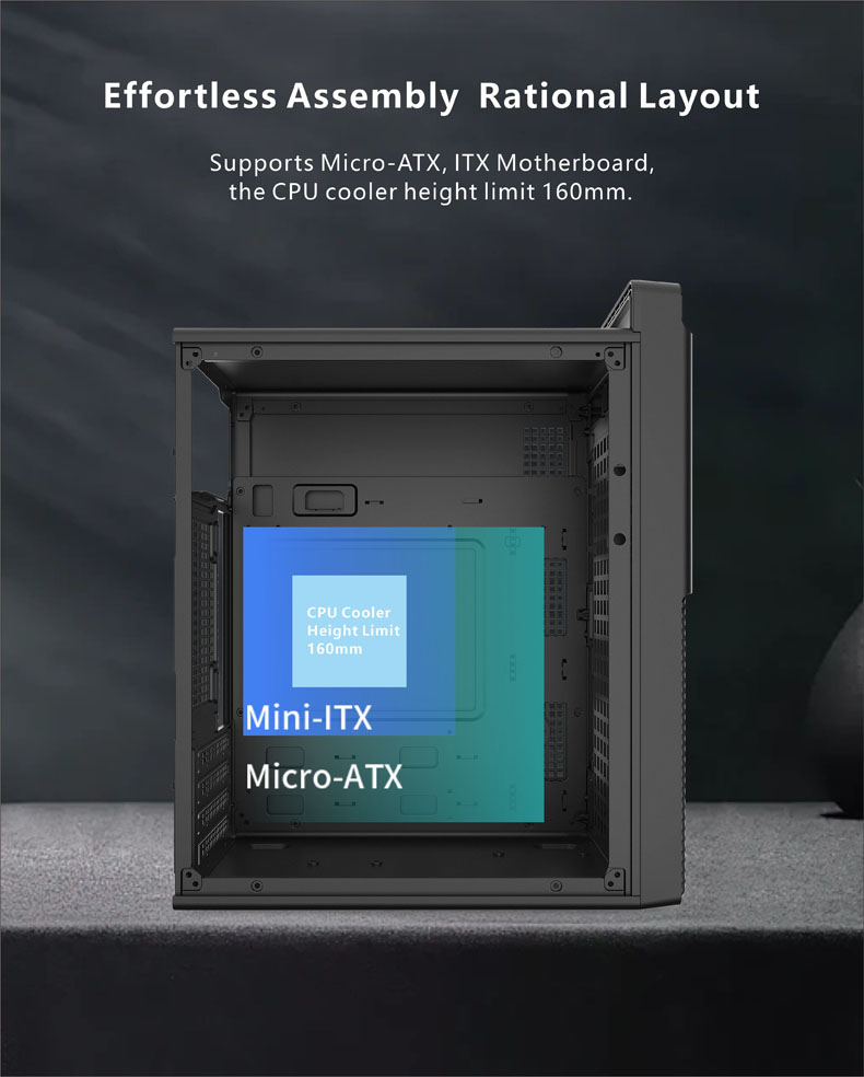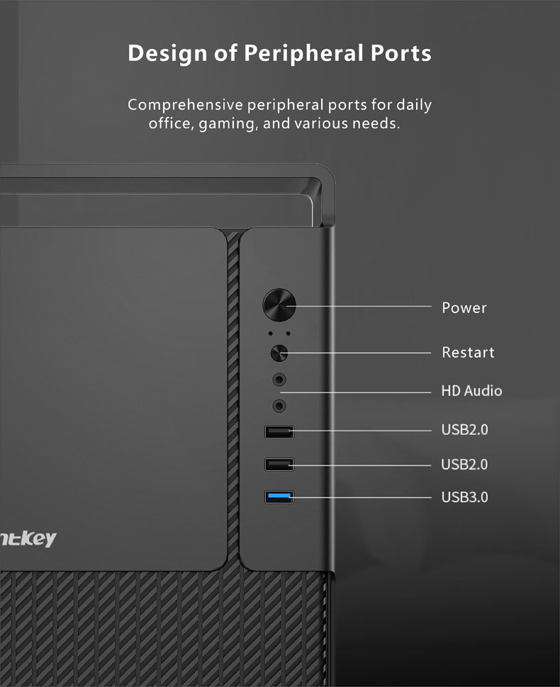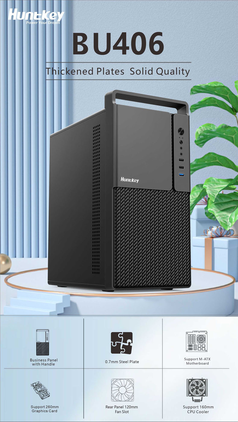 | Features | Portable mini desktop case with handle Thick metal Tempered glass panel and mesh panel optional |