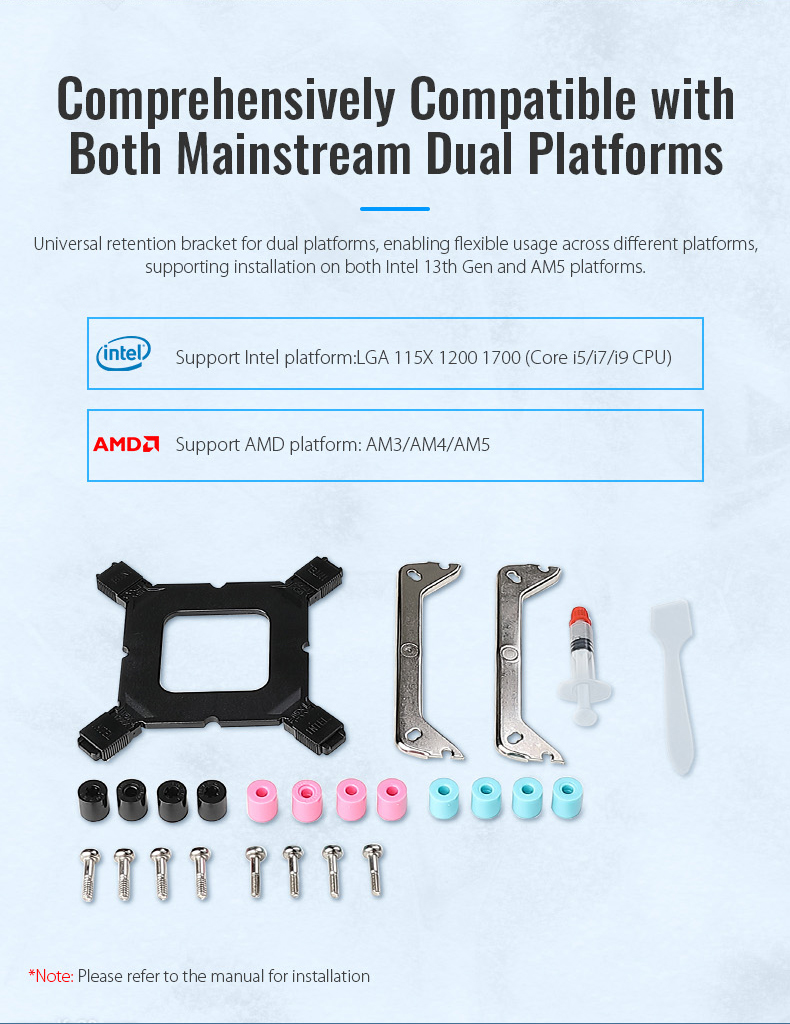 | Platform | 1.Intel LGA115X/1200/1700/1851 Core I3/I5/I7 2.AMD AM4/AM5 |