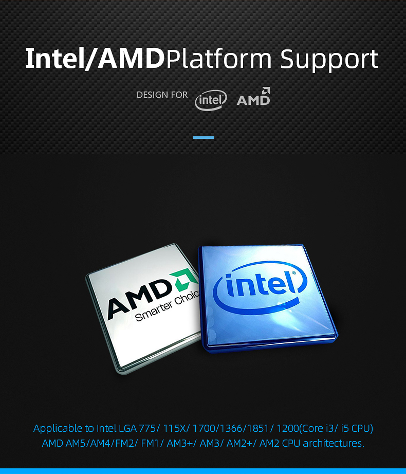 | Platform | 1.Intel LGA115X/1200/1700/1851 Core I3/I5 2.AMD AM4/AM5 |