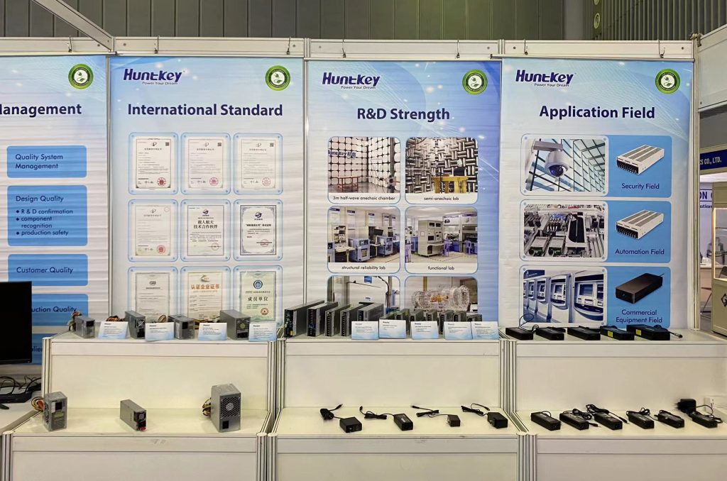 Huntkey has provided a full range of solutions to 2 Fortune 500 companies in the security industry, helping to build Xi'an into a smart city. The industrial power supply that attracted the most attention from visitors is the 350W switching power supply (HK1350-120NB/HK1350-240NB), which is 30mm ultra-thin, with overvoltage, overcurrent, overtemperature, undervoltage, short circuit protection, and passed 100% aging test. This product is usually used in security industry, servers, ATM and CCTV etc. Visitors showed great interest in 120W/150W high-power adapters, which meet the energy efficiency requirements of DOE VI in the US, pass GB/EN/UL safety standards, and are suitable for mini PCs, all-in-one desktops, smart speakers, etc.