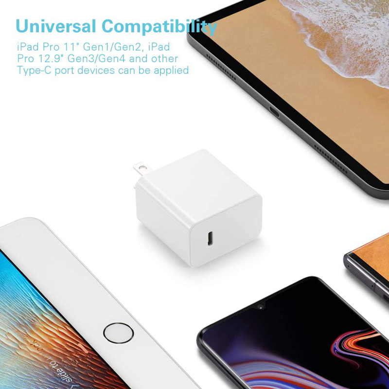 The charger is universally compatible with fast charging technologies, which makes it suite for a wide range of devices that equipped with USB-C interface such as smart phones, tablets, notebooks. The double-chip inside the 27W charger can properly adapt a worldwide voltage input from 100V to 240V. It means you can use it in any country as long as the charger can plug into the local socket.