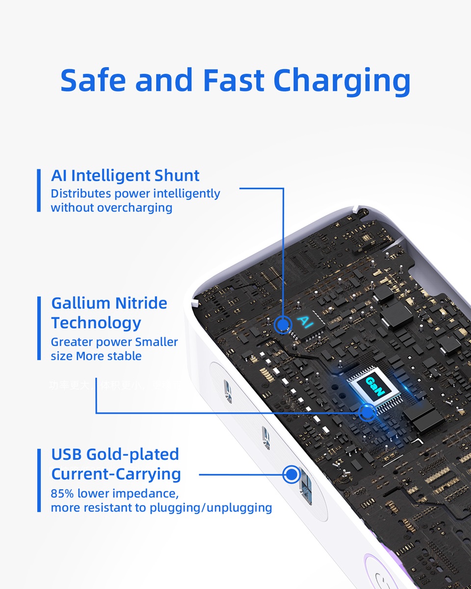 • 2 USB-A and 2 USB-C Output: Max 68W