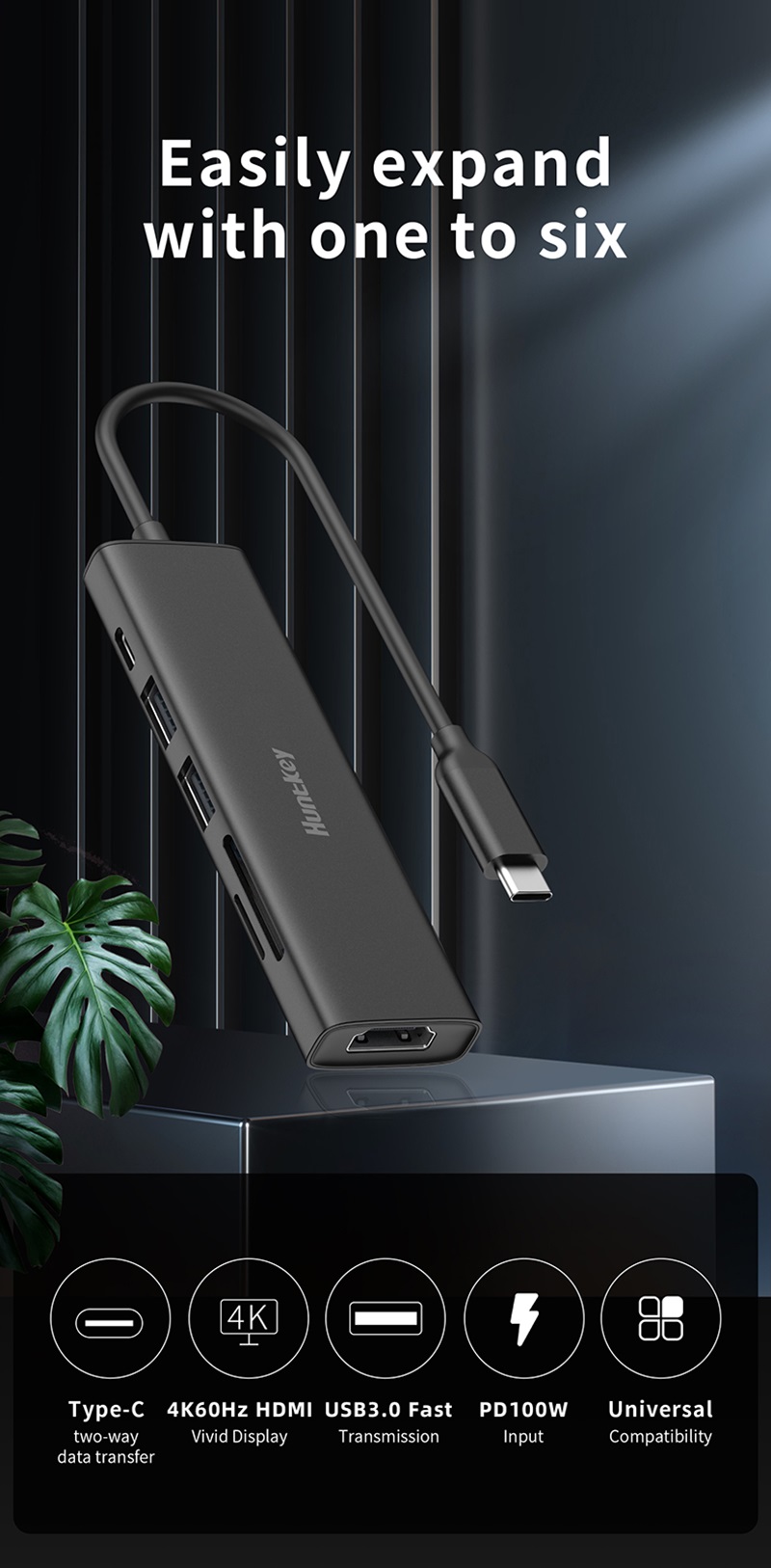 • Interfaces: 2*USB3.0+USB-C(5G+PD100W)+HDMI(4K/60HZ)+SD+TF