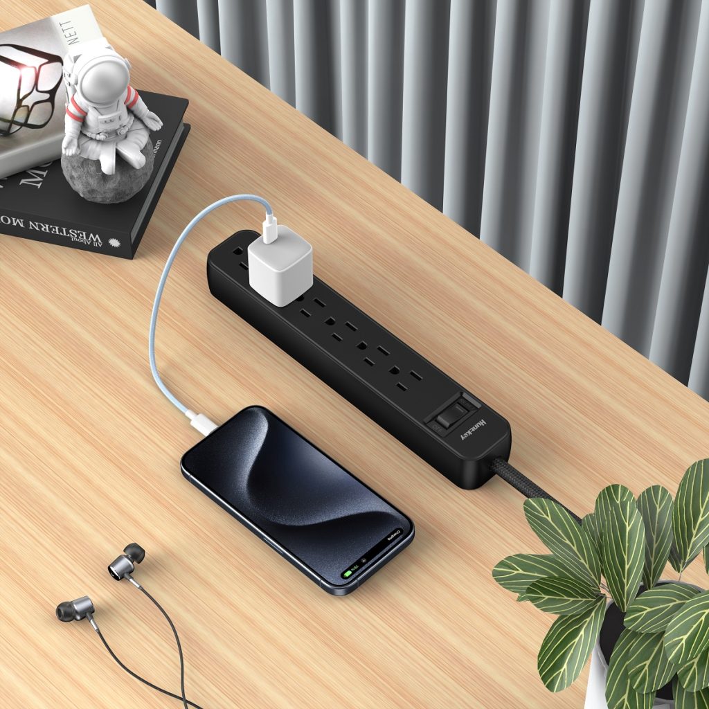 • Space-Saving Flat Plug – 45° angled ultra-slim flat plug fits behind furniture and tight spaces without blocking adjacent outlets, providing a clean, unobtrusive look.