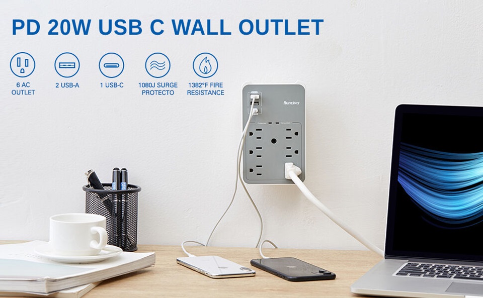 • 2 USB-A (12W)+1 USB-C(PD20W)total32W