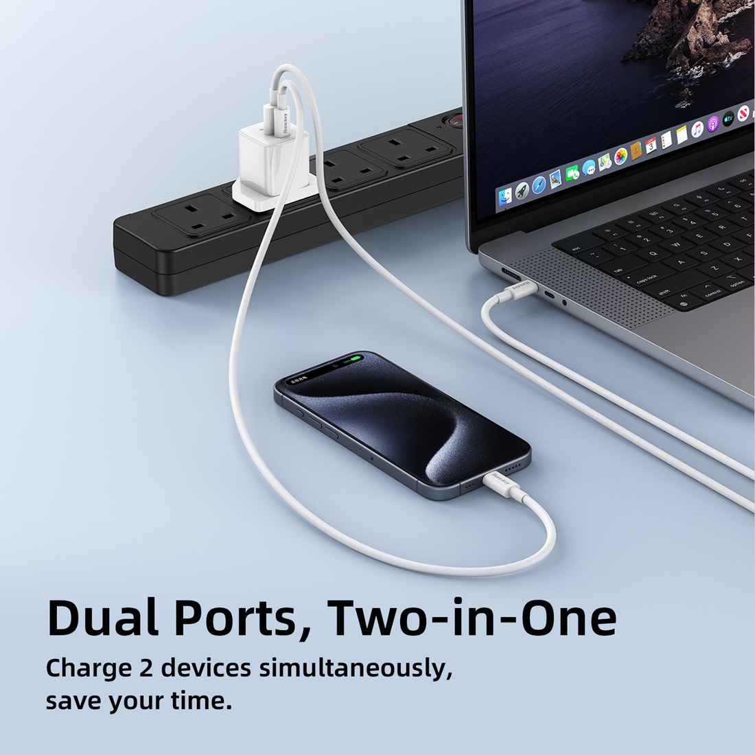 4. 1*USB-C+1*USB-A: charging 2 devices simultaneously, save time and space;
